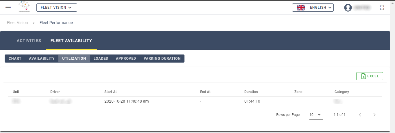 This tab shows you more details about the unutilized vehicles in your fleet, to access it, under Fleet Availablity tab, click on Utilization tab, a similar window appears.