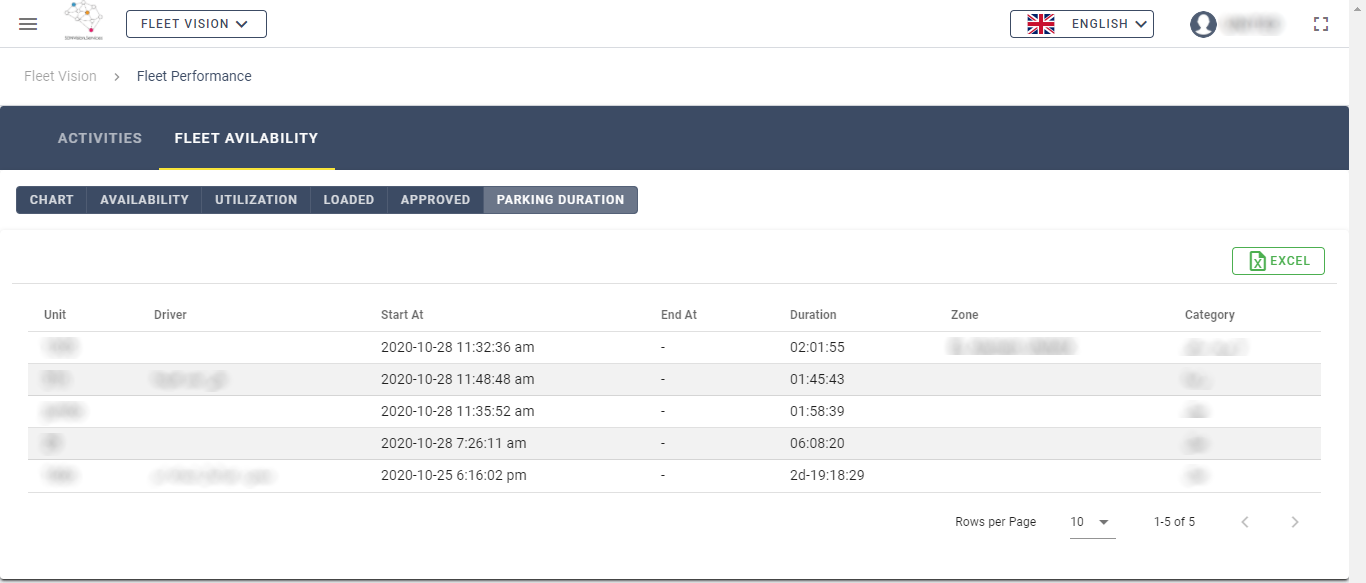 Fig.11You'll find all the details available in a report form; the parked unit's name, driver, the date of the stop, duration, the zone if any exists, and the category for stopping.