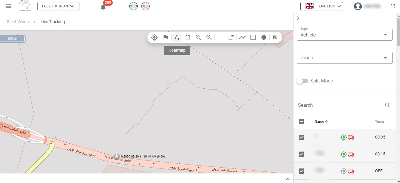 Fig.05In this section, we will discuss everything that's on the map control toolbar. It is located at the upper right side of the map, it has many features that would best aid you keep track of and manage your fleet.